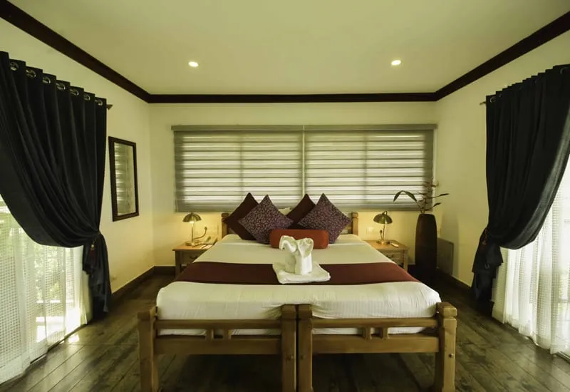Valley View Cabins [425 Sq.Ft] are situated on the slopes of a hillock, closer to our lake and swimming pool. The balcony offers a view of the nearby water body in the day time and the heavy mist surrounding these cottages make you feel like you are among clouds while on the balcony at night. These cottages offer the best chances of seeing herds of elephants on the opposite hill just outside the perimeter of our property.